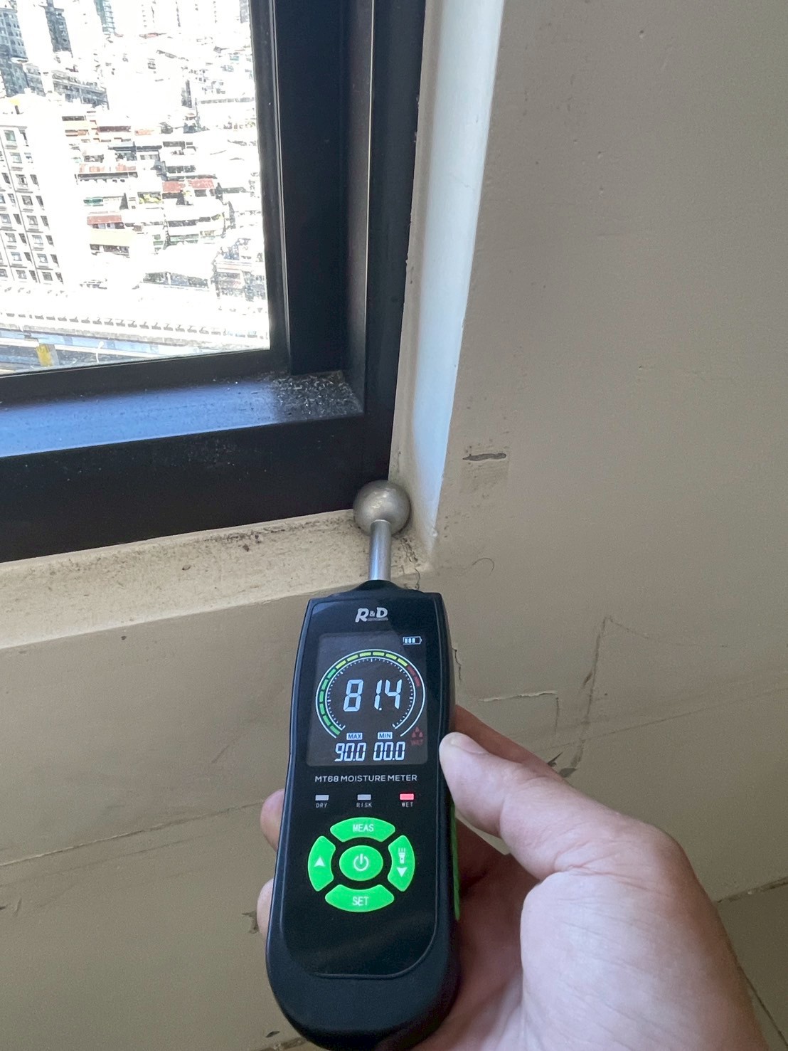 不只看表面,我們用專業含水率檢測儀測出牆體內部的濕度狀況。